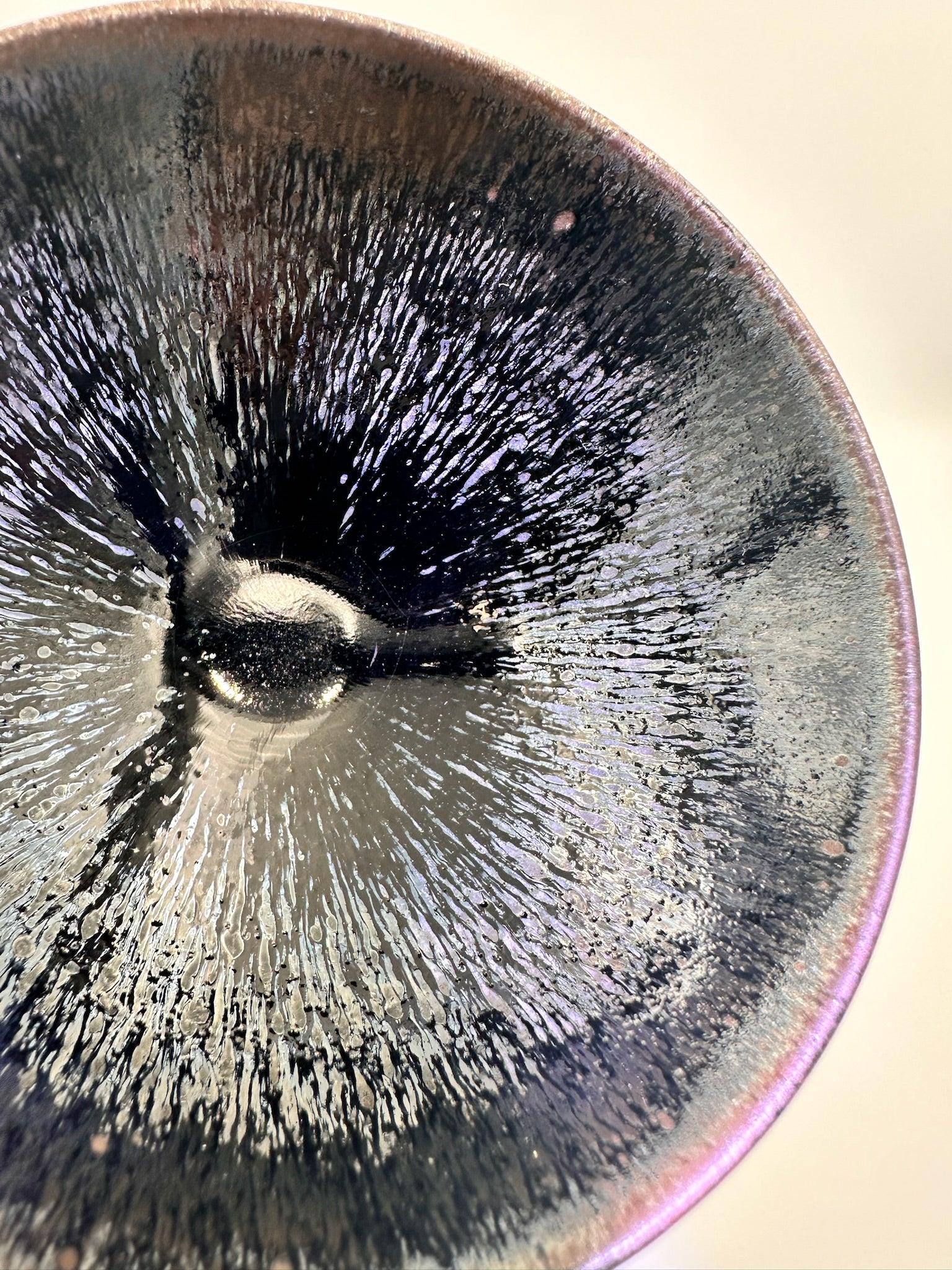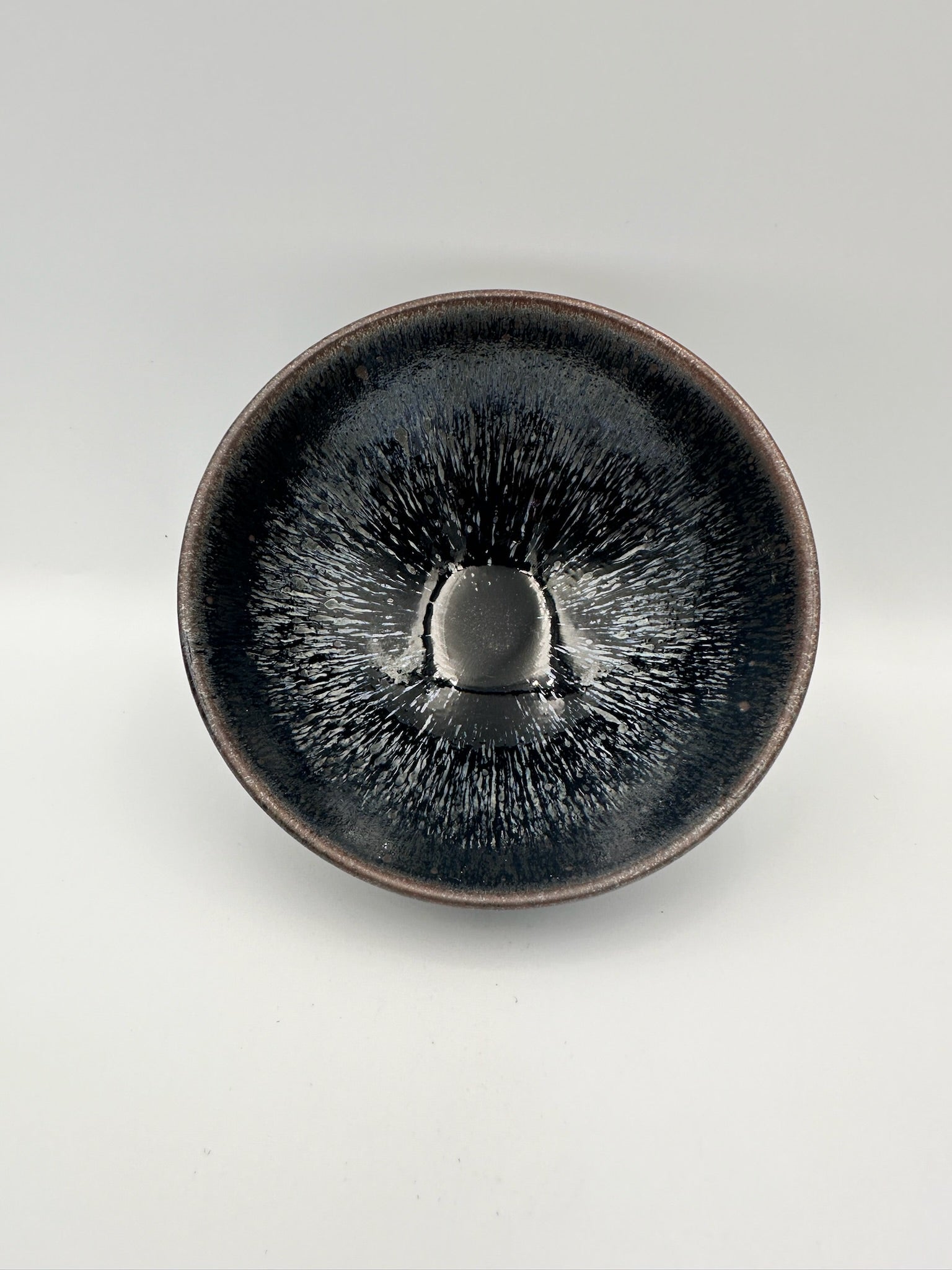 Elevate your tea experience with this exquisite flat mouth cup featuring black glaze accented by a silver hare’s fur pattern. The scorched iron red rim adds a touch of luxury, making each sip a celebration of craftsmanship and elegance. Perfectly balanced and visually striking, this cup enhances both the aesthetics and enjoyment of your favorite beverages.