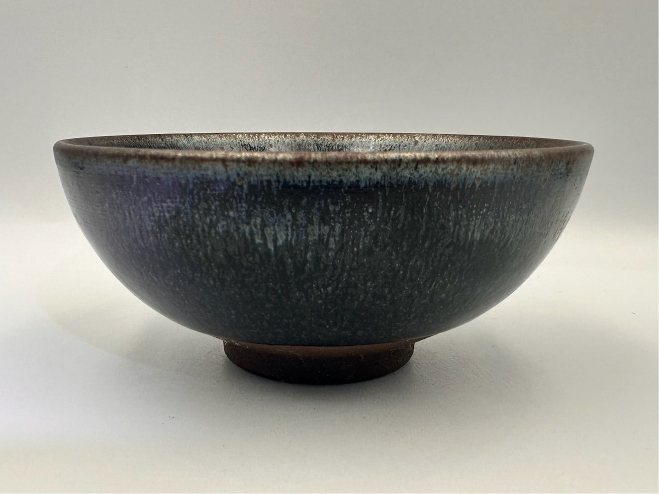 Black glaze silver hare’s fur pattern scorched iron red rim flat mouth cup