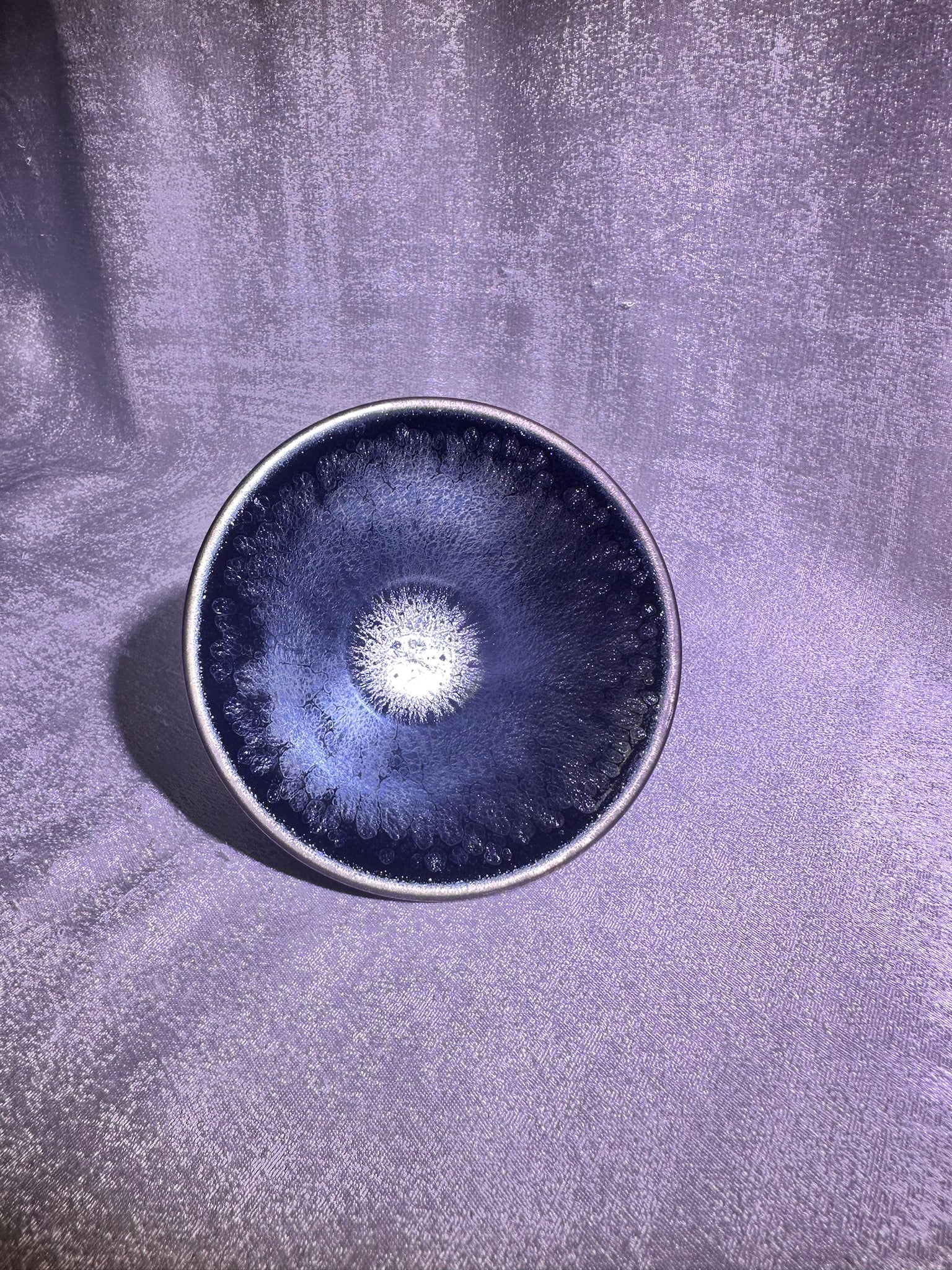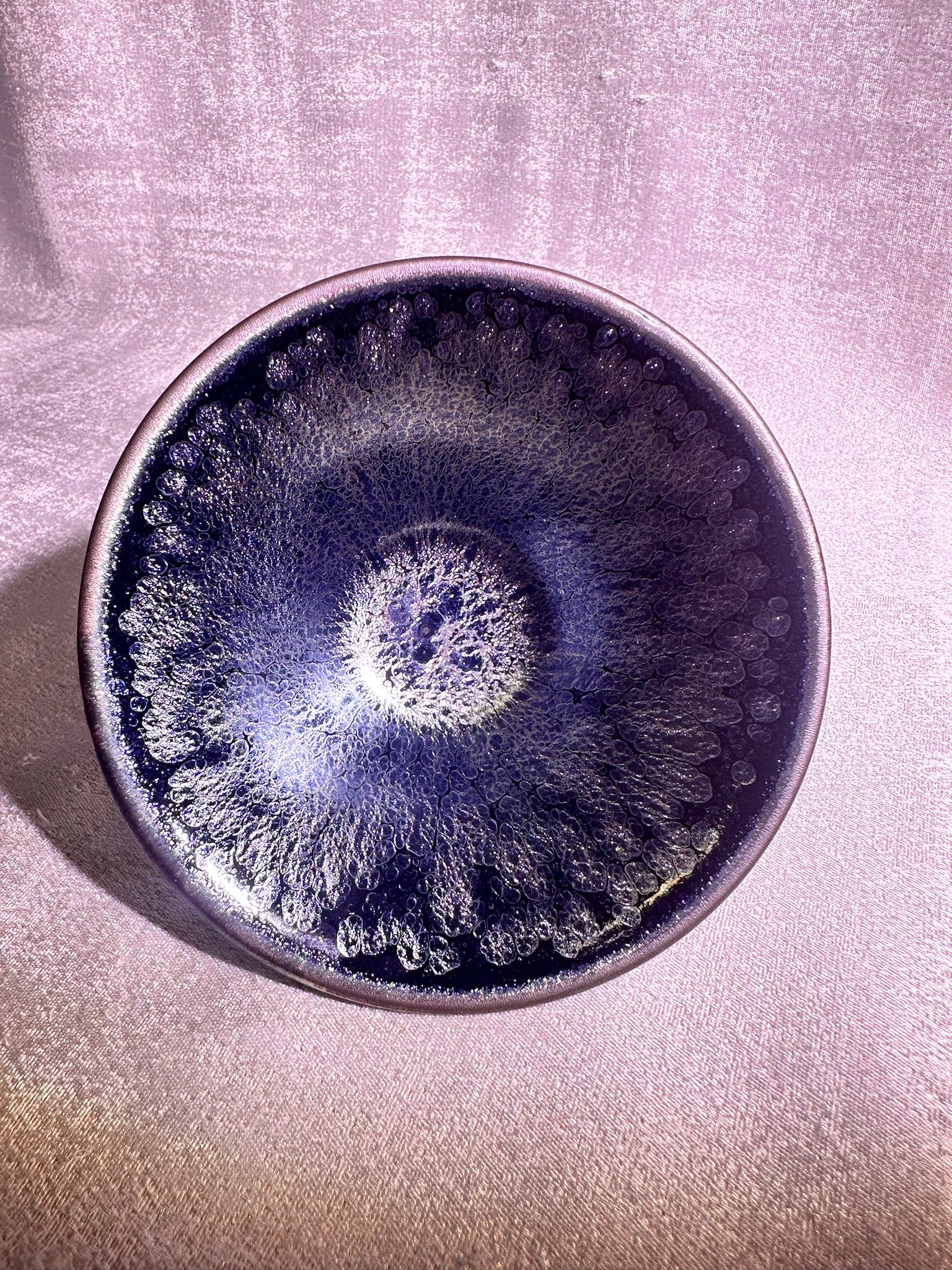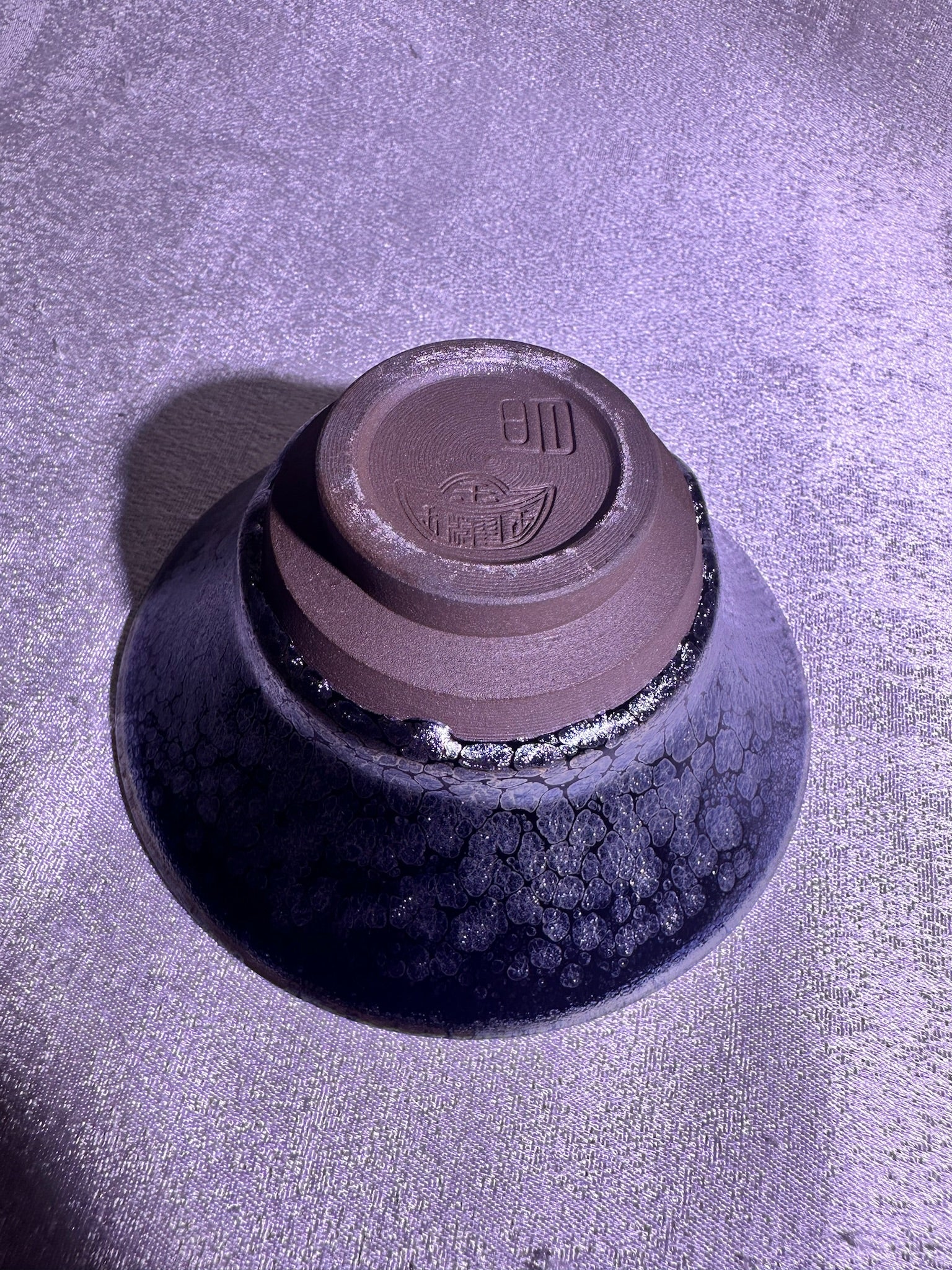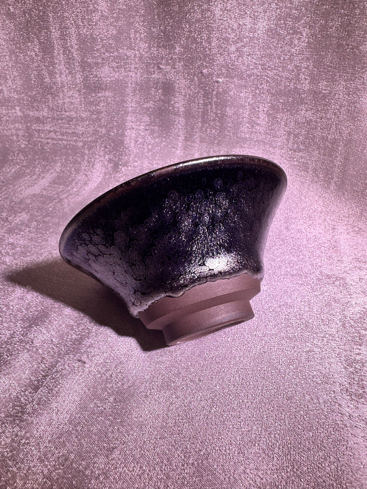 Cup19-Black gold glaze silver oil droplet jelly fish bubbles flare mouth shape cup by YeShiMing