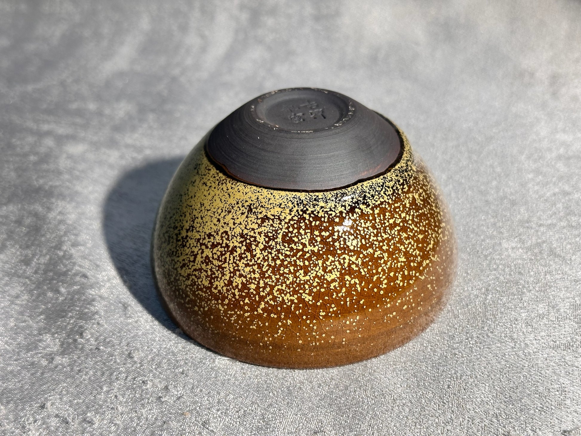 Cup1-Brown jade-like glaze daisy oil droplets pattern ice crackles monk bowl shape cup 古潭花 by WangZhangLiang