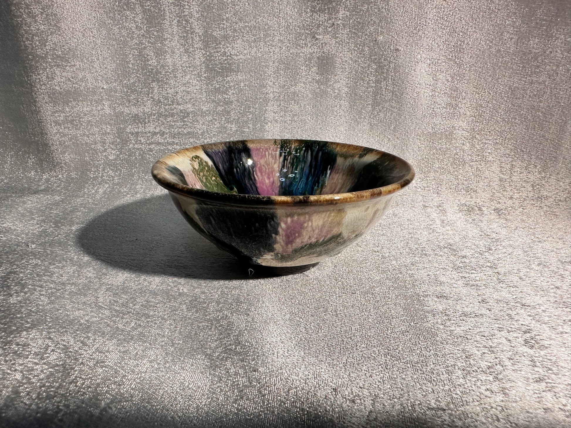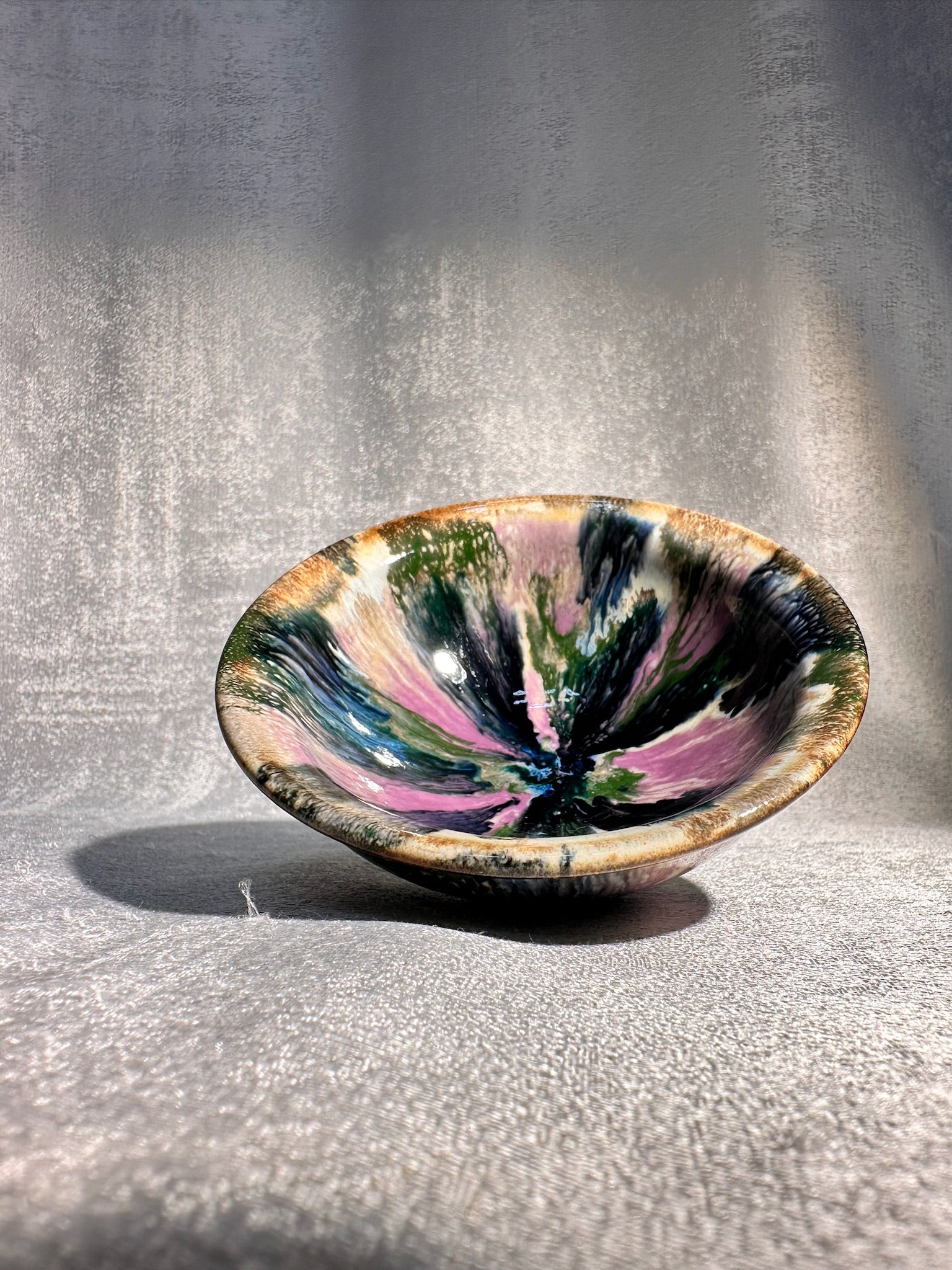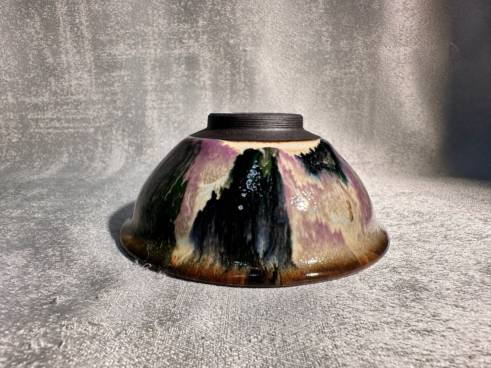 Purple green magenta mountain river scenery glaze official’s hat shape cup by YouChao