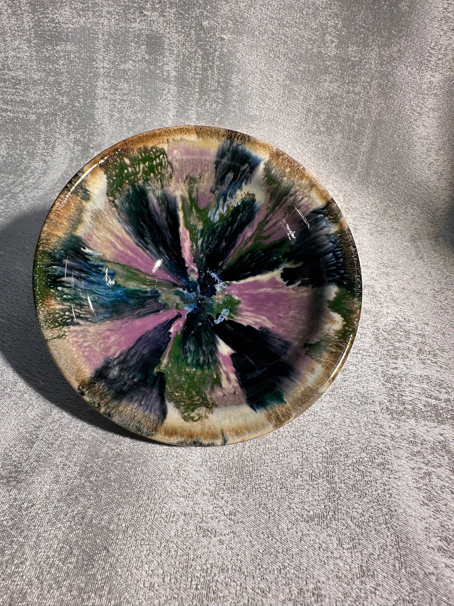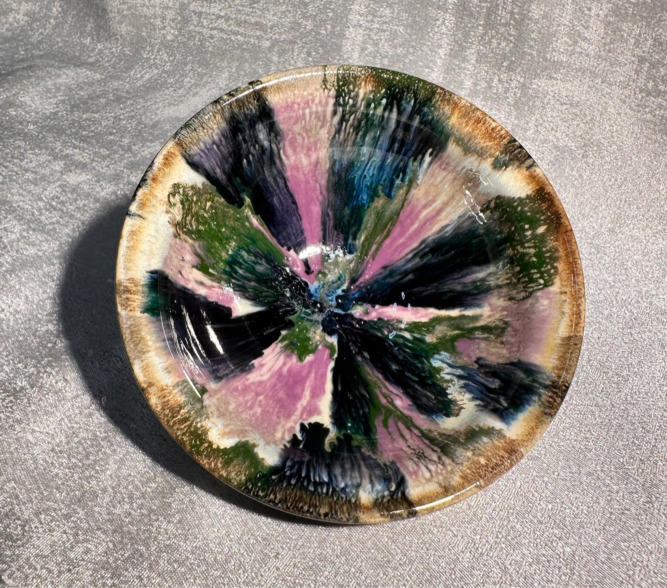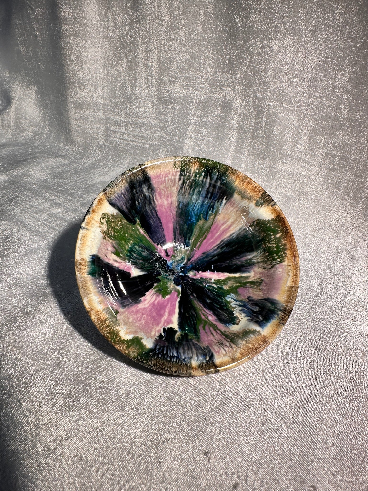 Purple green magenta mountain river scenery glaze official’s hat shape cup by YouChao